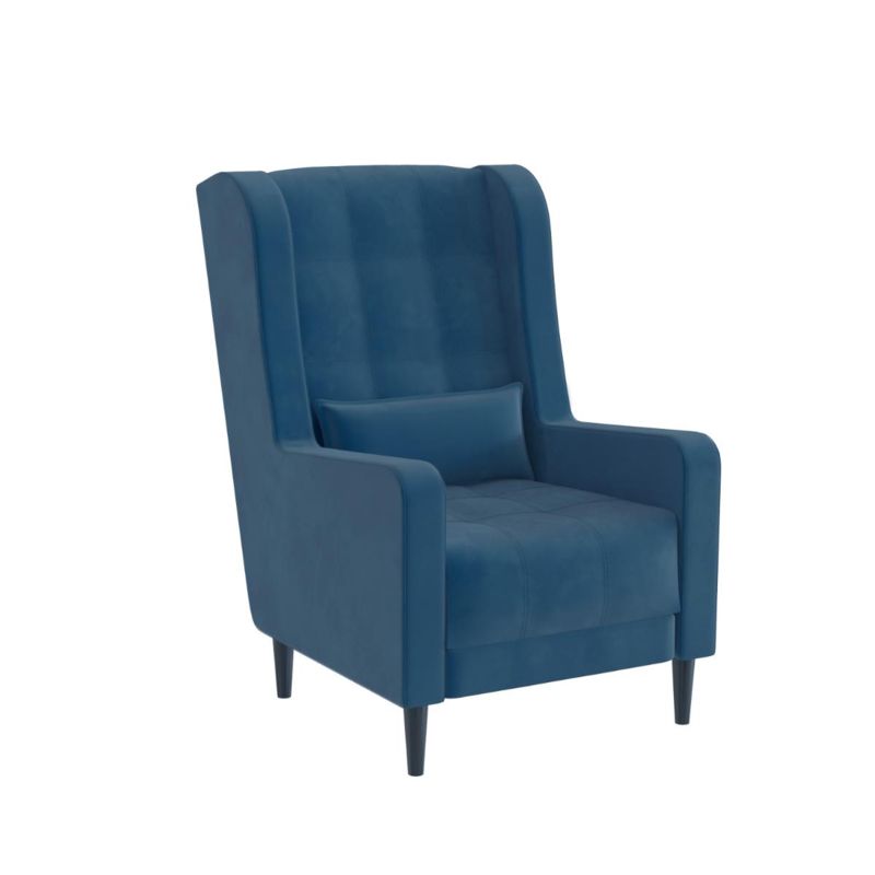 Обивочный материал - двухслойный плотный велюр. Данная ткань износоустойчива, без «эффекта письма», с водоотталкивающим покрытием. Экокожа устойчива к истиранию и разрывам, износостойкая. Не выгорает, проста в уходе. Опоры из массива дерева, окрашенные в черный цвет. Сиденье и спинка оснащены эластичными мебельными ремнями, обеспечивающими правильную поддержку спины. Удобная подушка идет в комплекте с креслом.